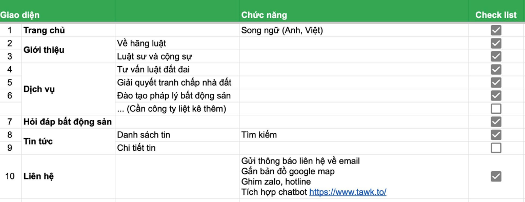 Trao đổi với khách hàng để biết yêu cầu về tính năng, giao diện, màu sắc cần có trên website. Phân chia hai phần: giao diện và tính năng rõ ràng để chốt. Ở bước đầu này sẽ gửi trước các mẫu giao diện hoặc kiểu website cùng ngành để công ty tham khảo cũng như có cái nhìn trực quan về sản phẩm sắp tới của họ.