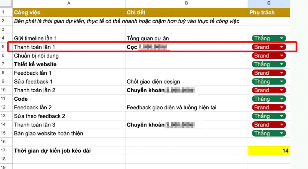 Sau khi thống nhất được giao diện, chức năng cần có trên website, sẽ lên timeline và estimate thời gian cụ thể cho dự án.