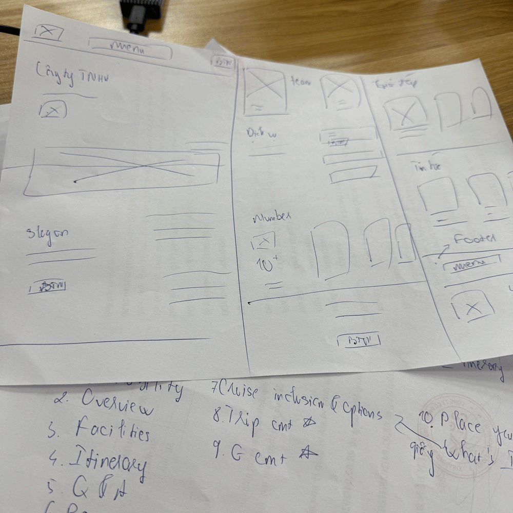 Sau khi đã có đủ nội dung và bộ nhận diện, tiến hành lên wireframe cho website và từ bản nháp sẽ lên trước Trang chủ. Để lên được Trang chủ hoàn thiện sẽ dựa vào moodboard, wireframe đã chuẩn bị từ bước trước.